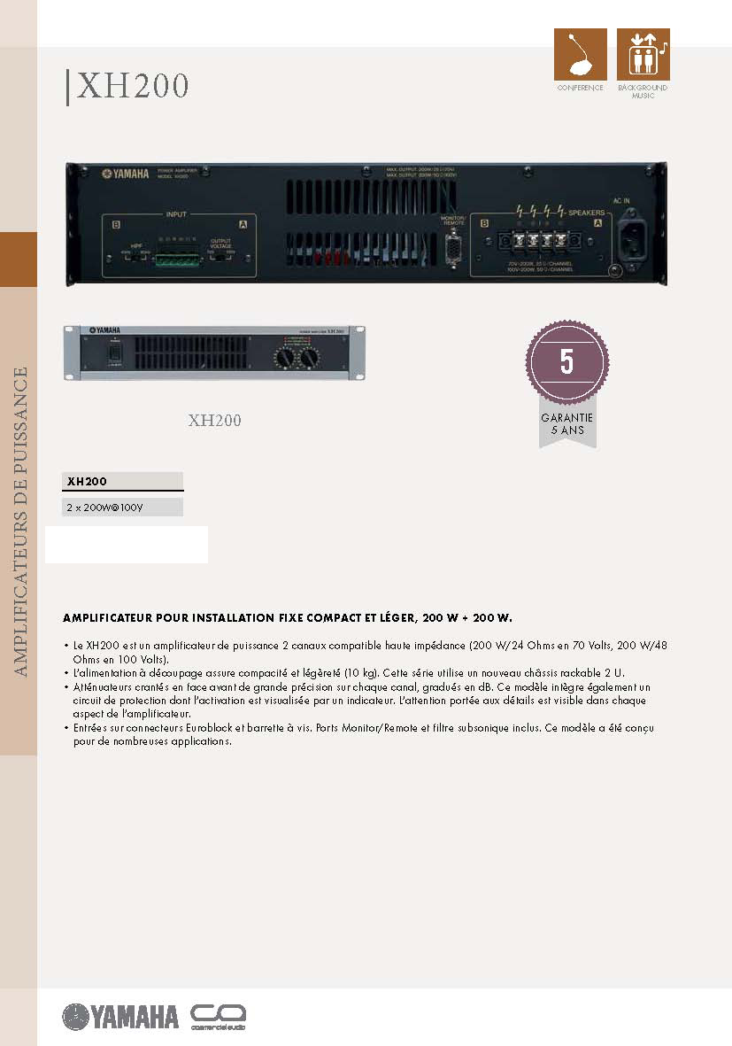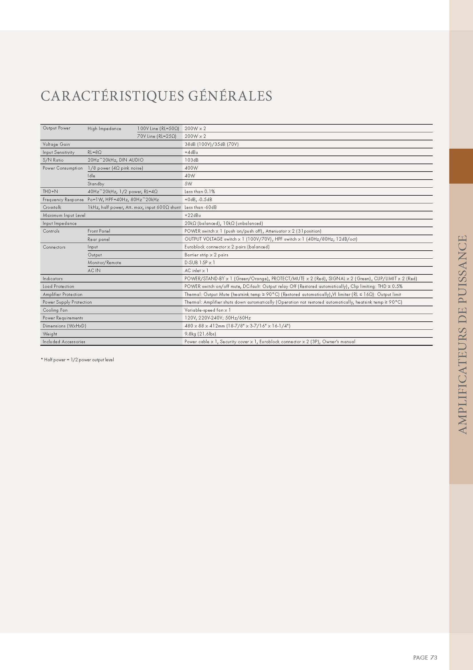 Ampli 2 canaux 2 x 200W pour ligne 70V et 100V