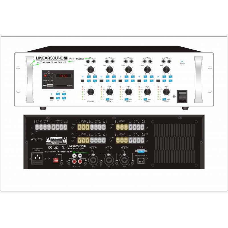 Matrix 6 inputs and 4 outputs 120w 100v with MP3 player