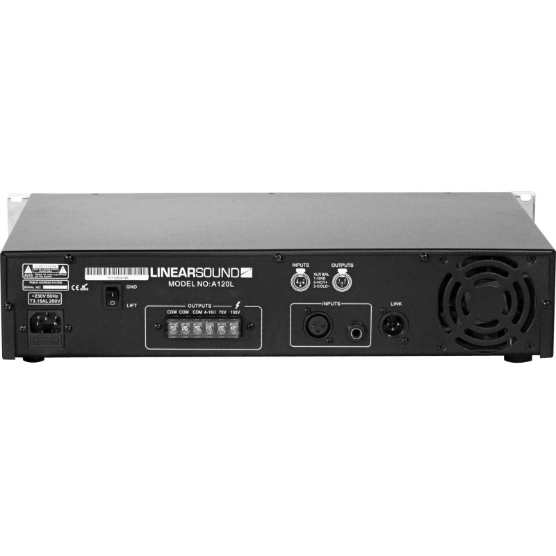 The A120L is part of a good quality professionnal range of amplifiers. It can be rack-mounted. It has 4 outputs, 1 balanced or unbalanced input and output. It is totally protected against short-circuit, overheat and overload.Recipient :