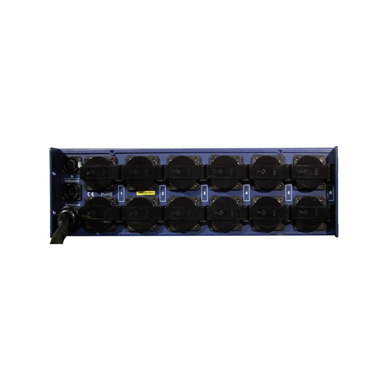 The LLD.63 is a 3U 19'' portable dimmer. It can be rack-mounted.It is equipped with a 30mA 4P 40A RDC breaker and 12 single NF/CEBEC 16A sockets (PC)