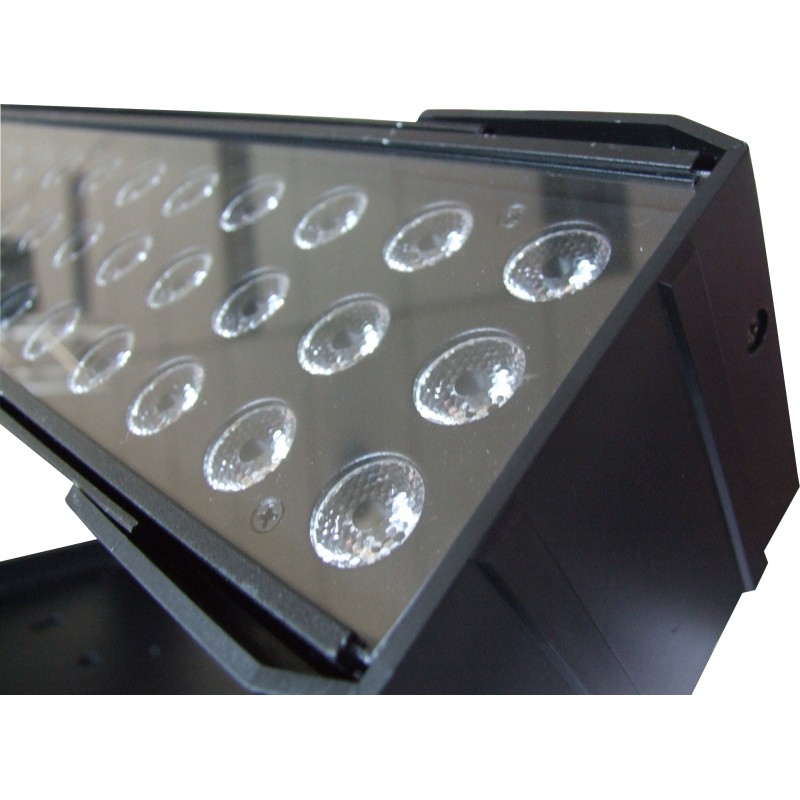 This LED BAR is equipped with 54 3W lamps. It has many functions : colour changing effects, strobe effects but also Dimmer 0-100%. DMX controlled, Auto-run, Master-slave, It has a 15° beam angle.