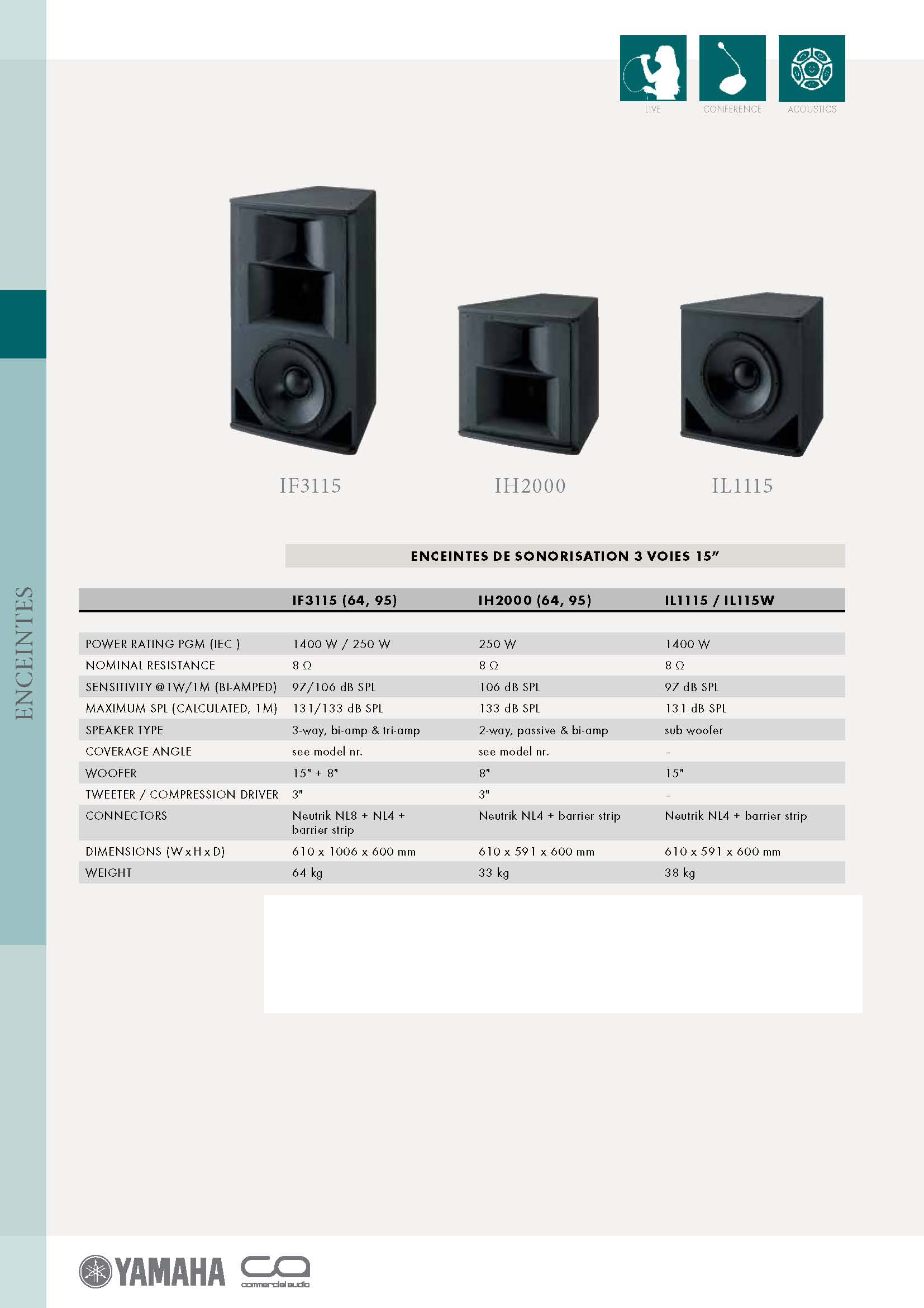 Enceinte 15" 3 voies 1400W PGM
