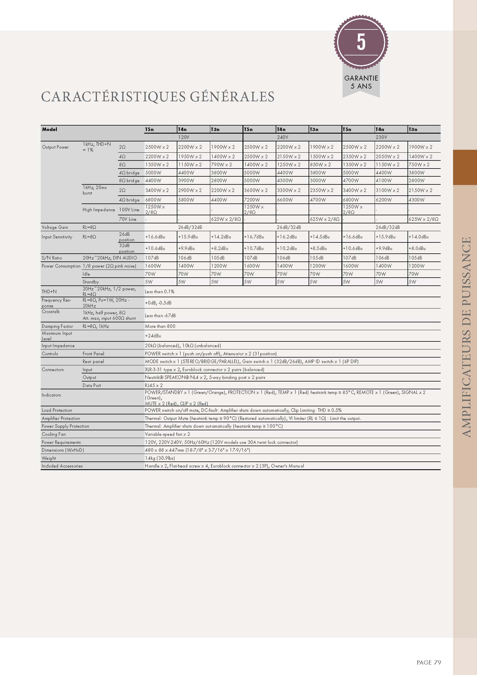 Les amplificateurs de la série Tn ont été conçus pour garantir des performances optimales, même dans des conditions de tournée éprouvantes, tout en offrant une qualité sonore digne d'un modèle haut de gamme , avec une puissance de 2 500 watts en sortie (T5n, stereo@ 2 ohms).
