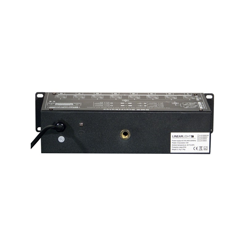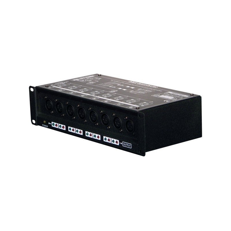 Ce distributeur DMX compact dispose d’une entrée et de 8 sorties isolées XLR 3 broches.