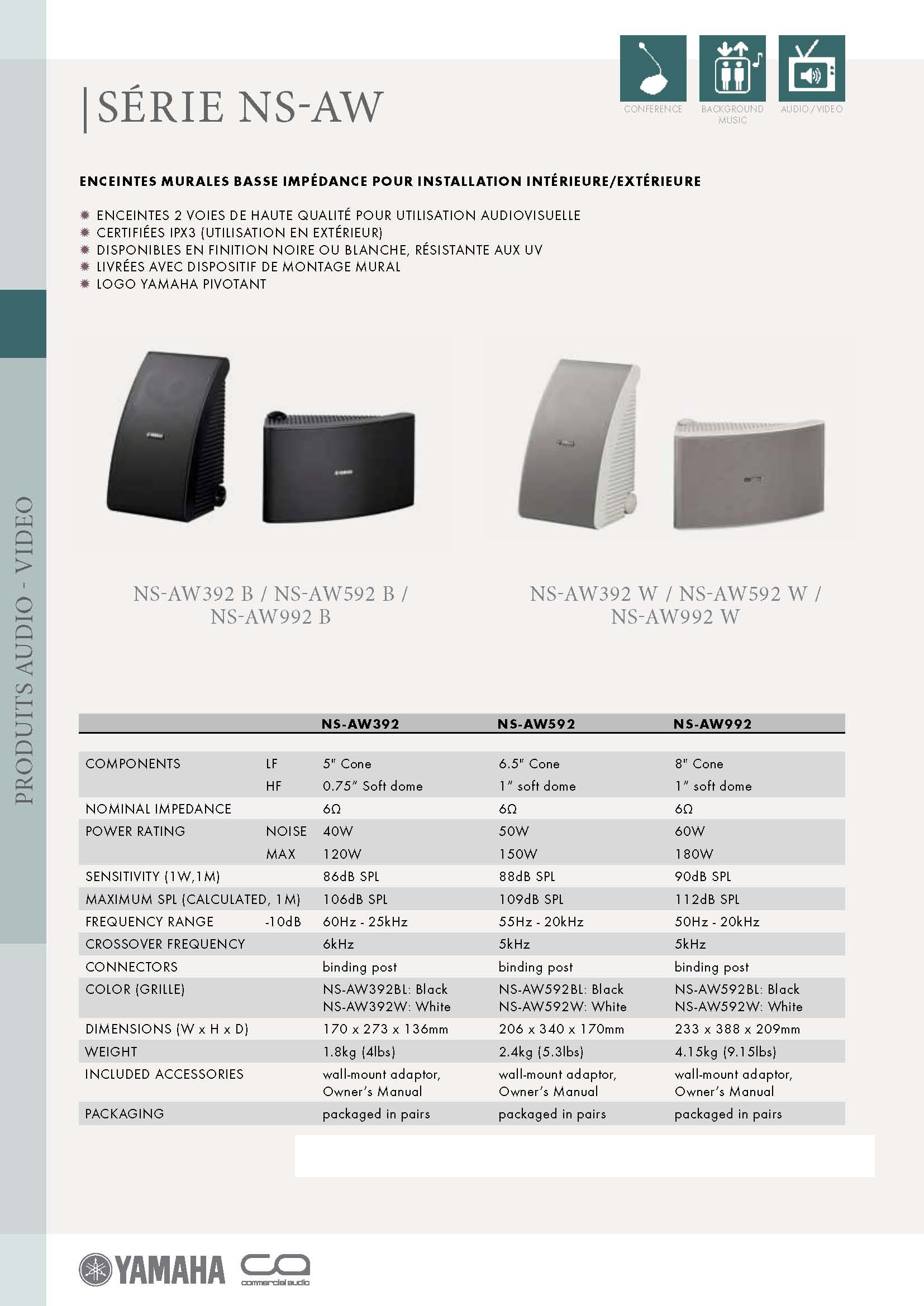 Grâce au caisson en plastique et au traitement particulier des woofers et des tweeters, ces enceintes fonctionneront avec une parfaite fiabilité lorsqu’elles seront installées en extérieur. Elles sont résistantes à l’eau, au soleil (rayons ultraviolets) et aux températures extrêmes. Les supports sont revêtus d’une couche poudrée pour en assurer l’imperméabilité.