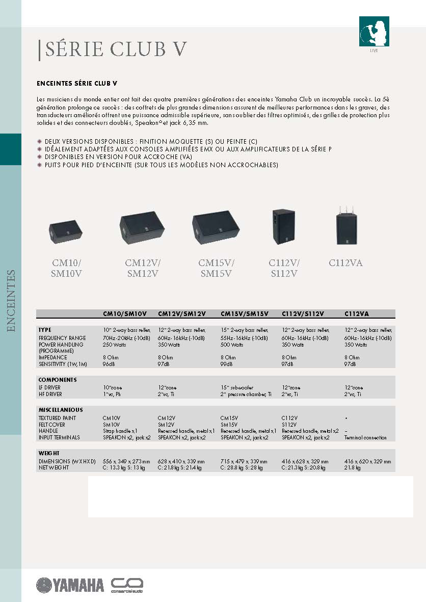 Développés et fabriqués aux Etats-Unis, les haut-parleurs de la série Concert Club ont été salués partout dans le monde. La nouvelle série Mark V est une version totalement revisitée de la précédente gamme Concert Club IV, proposant trois modèles pour le son en façade, trois caissons de basses et trois modèles de moniteurs.