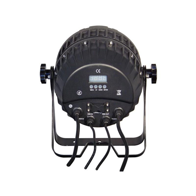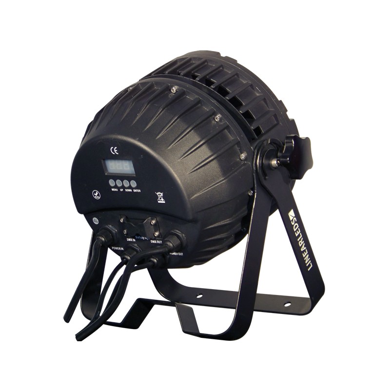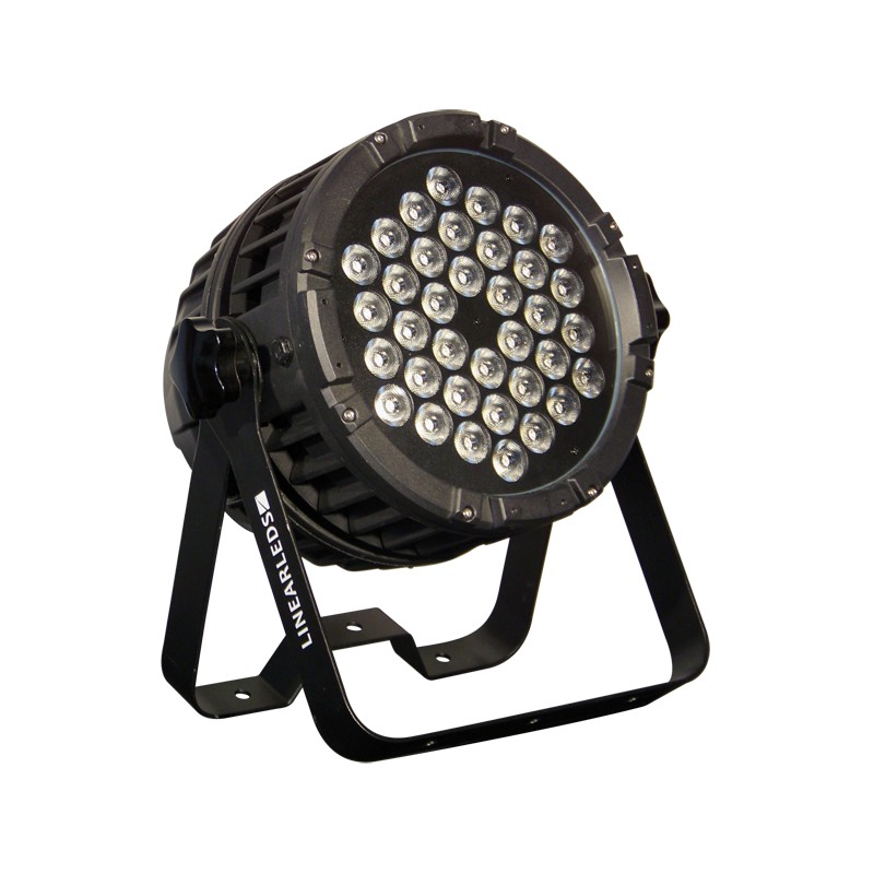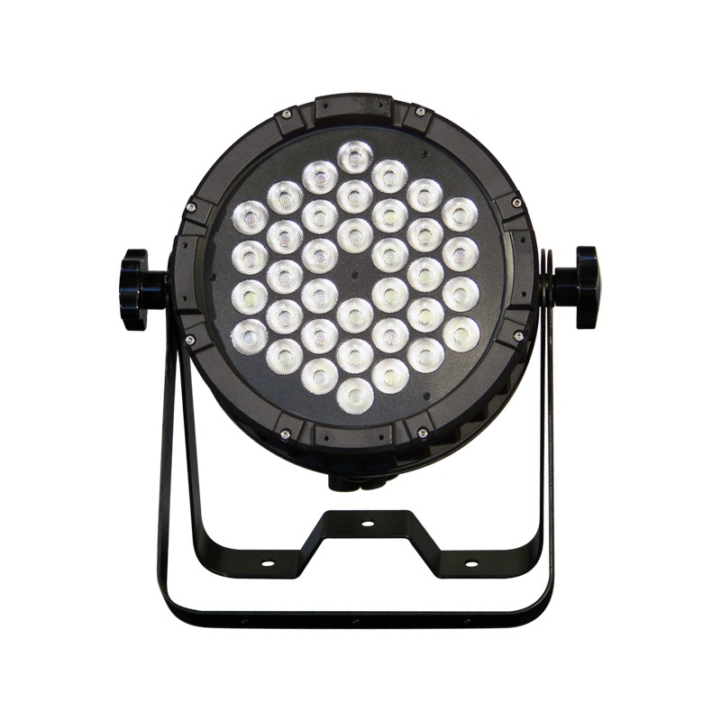Ce projecteur LEDS est équipé de 36 LEDS de 10W chacune. Il embarque les fonctions DMX et Master-Slave et permet de nombreux effets : Dimmer, strobe, changements de couleurs. Son angle d'ouverture est de 45° et il dispose d'un indice de protection IP65.