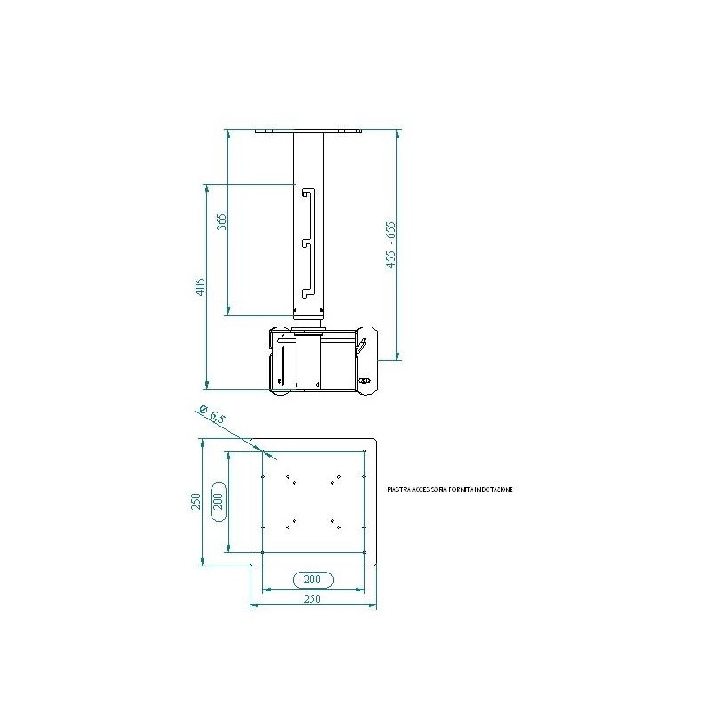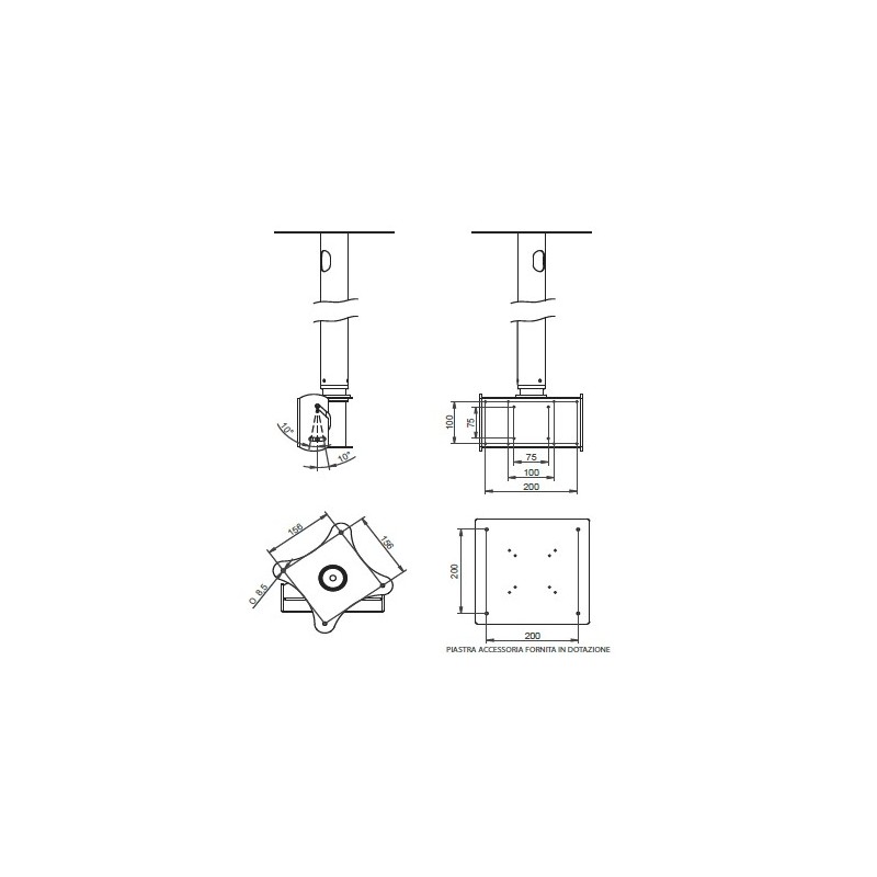 Support plafond pour moniteur avec tube réglable avec platine d’adaptation incluse.